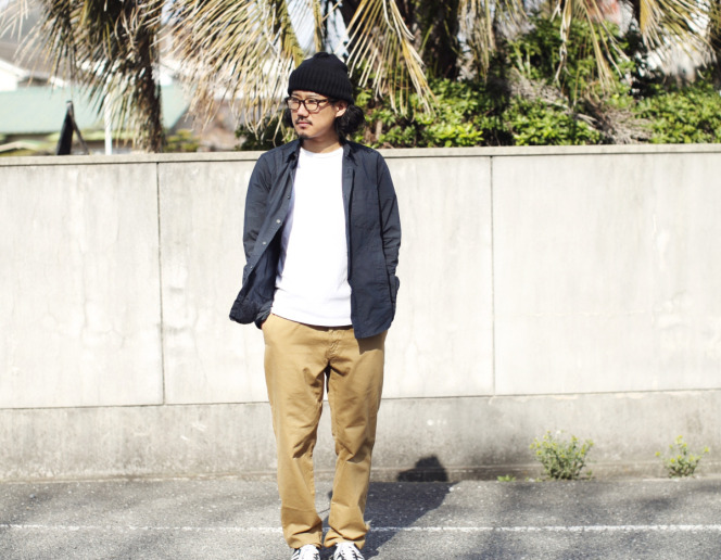シルエットは41カーキと呼ばれているようなアメリカ軍のチノパンのシルエットを少し細身にしたような形です。