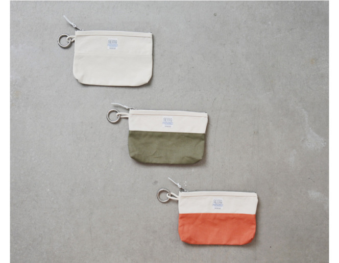 生地はSETTOオリジナルの8号帆布を使用。10色展開とカラーも豊富なので、お気に入りの1点が見つかるかも!フック付きなのでパンツのベルトループやバックの取っ手に引っ掛けてちょっとした小物入れにすると取り出しやすくて便利です。